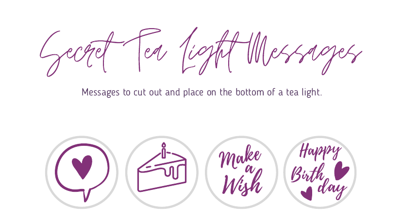Transform your left over tea lights in to awesome little gifts with a secret message. Light the wick and see slowly the wax melt and the message reveal it self on the bottom.Â